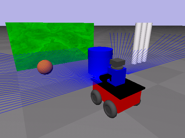 La fuerza repulsiva de cada obstáculo percibido es inversamente proporcional a la distancia. La fuerza repulsiva total será la suma vectorial de todos los obstáculos. En el caso del robot Pioneer usaremos el sensor detector de distancias laser, que nos proporciona la distancia a obstáculos con resolución de 1º, de en toda la mitad frontal de nuestro horizonte. Es decir, tendremos 180 distancias a obstáculos con las que calcular nuestra fuerza repulsiva.